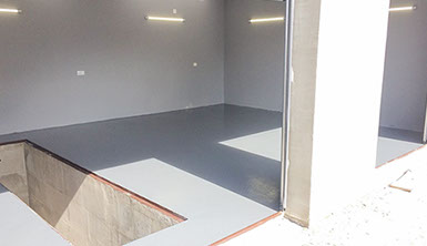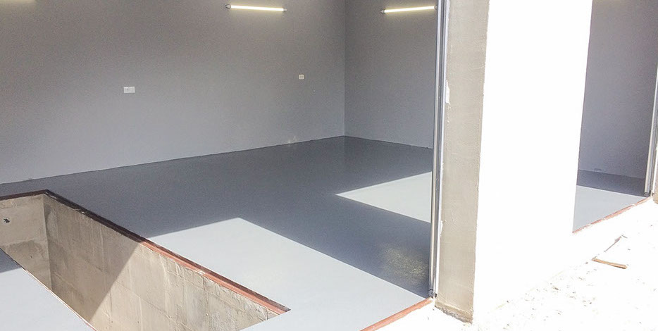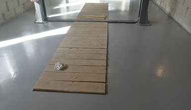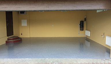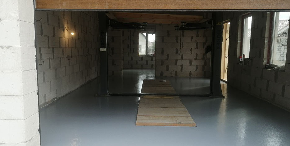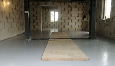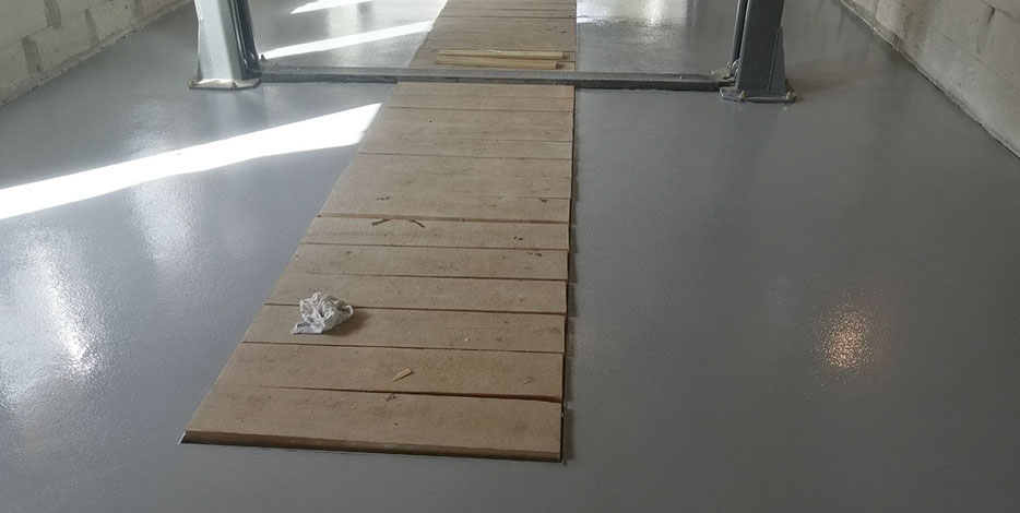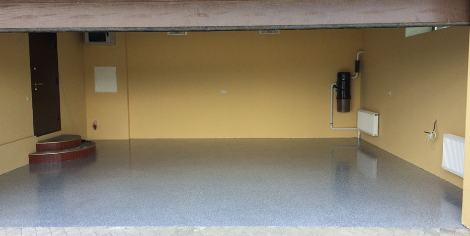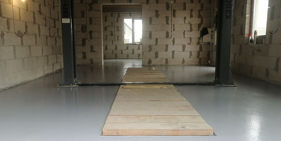 Полимерное покрытие пола, толщиной до 1,0 мм. Подходит для гаражей с прочным основанием. Служит как защитный слой предотвращающий разрушение бетонной стяжки в гараже. Выдерживает механические воздействия слабой интенсивности и химические воздействия воды, ГСМ, разбавленных кислот и щелочей малой интенсивности.